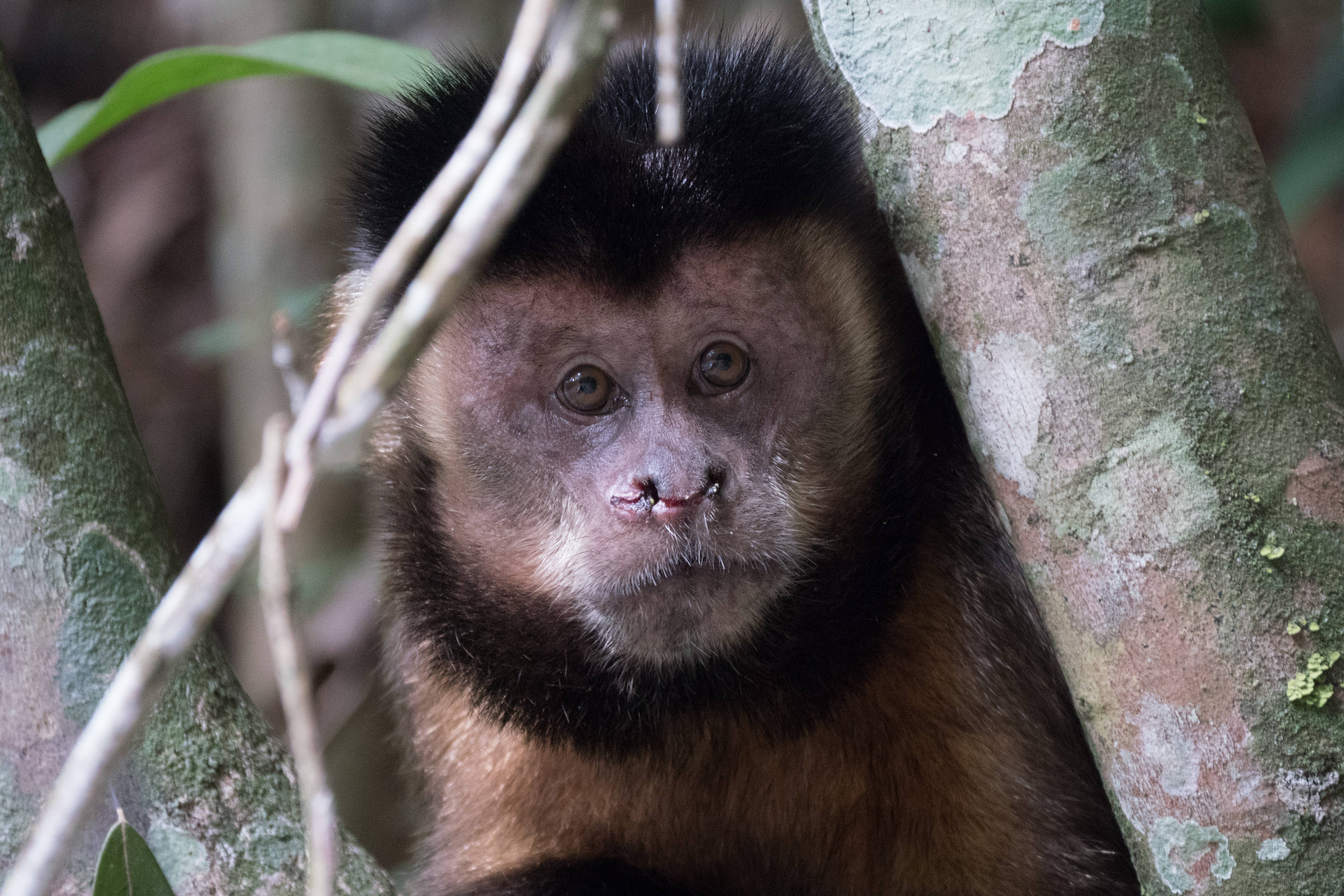 But what I wanted to talk about in this post is one particular image which I took on my recent trip to Brazil, in the Floresta da Tijuca, the rainforest in Rio de Janeiro – as it happens at the side of one of the roads that the Olympic cyclists raced along this week. It’s this image of a tufted (or brown) capuchin monkey – it’s not my favorite image that I’ve taken with this lens, but I think it’s technically one of the most interesting.