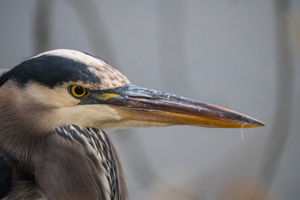 Finally, here is a close up portrait of the heron, again taken through vegetation. It is very nice and sharp with the eye in clear focus.