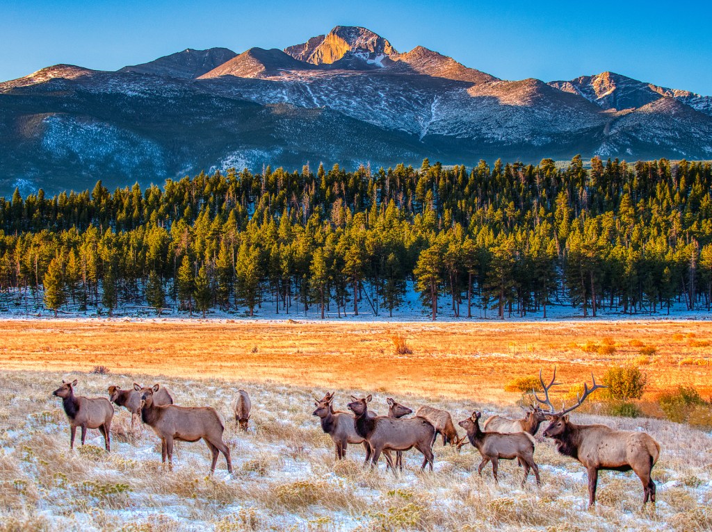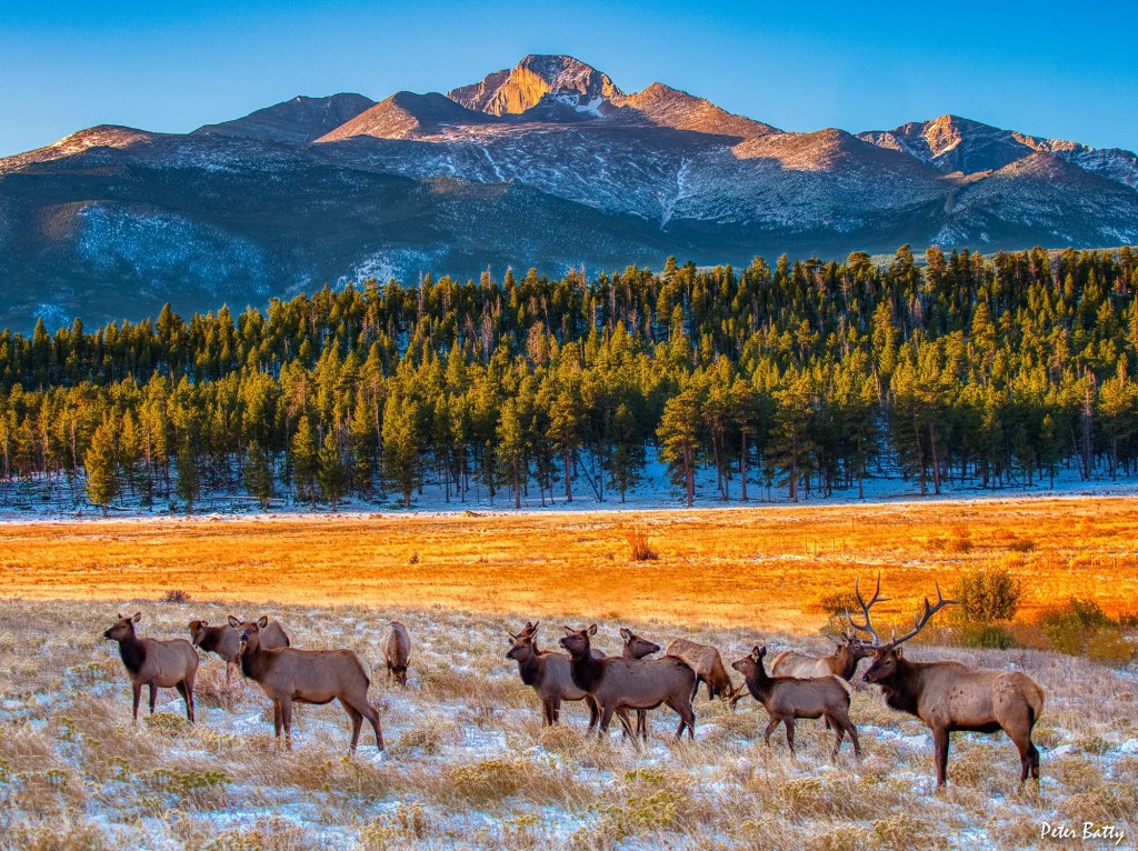 This next one was a serious contender for me, and finished third in the voting with 71 votes. I was quite keen on this one, partly because it’s both a nicely composed landscape shot, with well known Long’s Peak in the background and some nice layering, and in addition it’s also a good wildlife shot, with a bull elk and his harem during the fall rut. And on top of that there’s some snow on the ground. It’s quite hard to get that combination of a good landscape and wildlife shot in one – an animalscape, as I like to call them, which has become a fairly significant category in my portfolio.